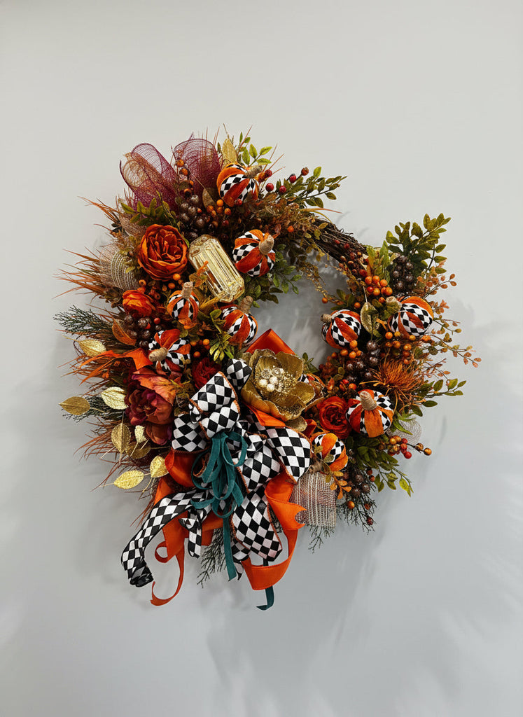 Handmade by Mom + Maker Studio, this wreath captures the elegance of autumn with a playful designer twist.