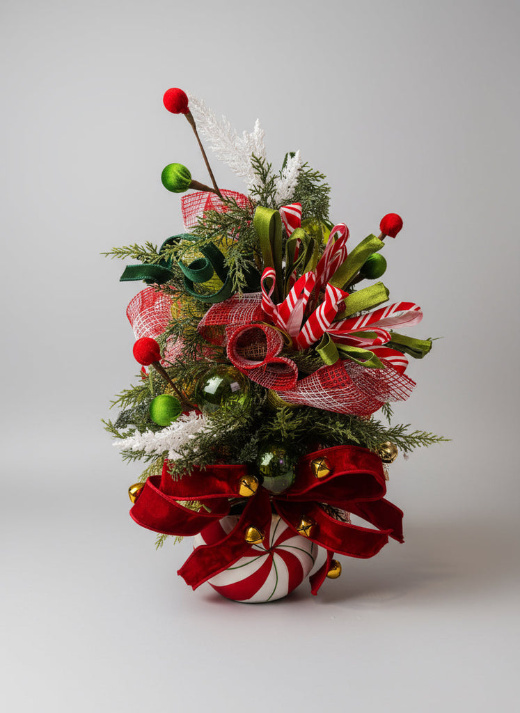 Bring holiday cheer and candy-cane charm to your home with this Peppermint Twist Christmas Arrangement 🍭🎅 — a handmade creation bursting with festive color, sparkle, and Christmas joy!