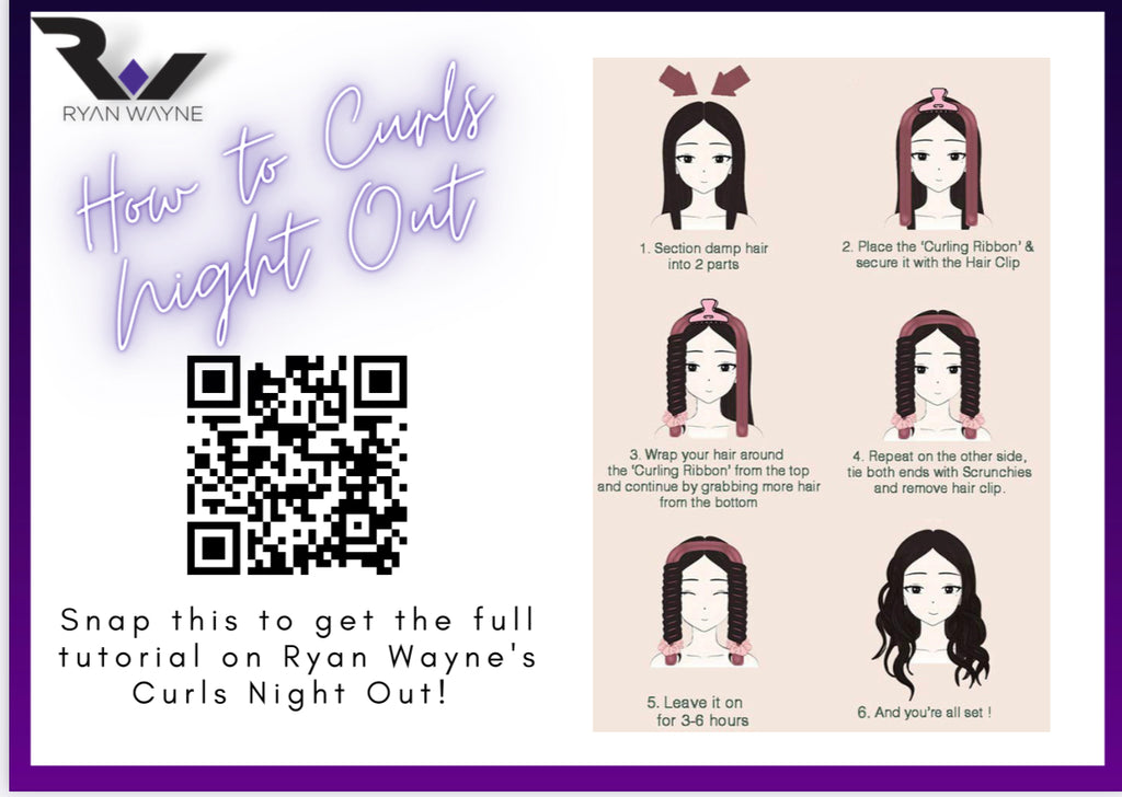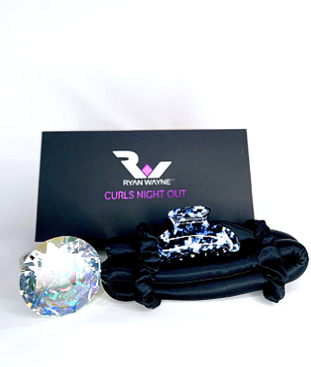 DIRECTIONS: After applying Ryan Wayne Hair Products, simply part the hair into designated area, dividing it into two areas. Place silk rope on top of your hair, using the clip to hold it in-place. Wrap hair around silk rope in the curl pattern of your choice. Once wrapped, tie it off with the silk scrunchie to hold it in place. Remove clip.  Sleep. Wake up, unwrap, curls for days!