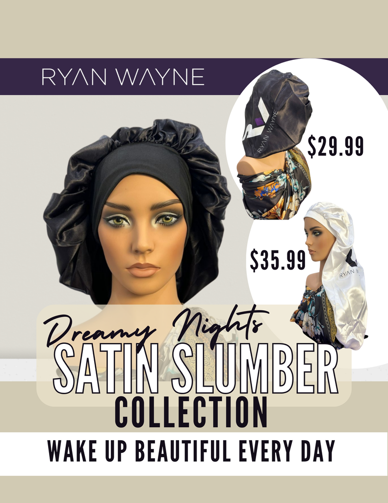 Experience ultimate comfort and style with Ryan Wayne's Satin Slumber Head Wraps! Available in 3 styles and 2 colors, our head wraps are designed to reduce hair friction while you sleep. Style 1 offers a soft stretch material, while Style 2 features adjustable ribbons for a perfect fit. Style 6 is perfect for long-haired divas. Wake up to flawless hair every morning with our head wraps.