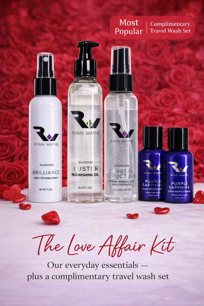 The Love Affair Kit brings together three full-size Ryan Wayne styling essentials — plus a complimentary travel wash set — for a limited time.